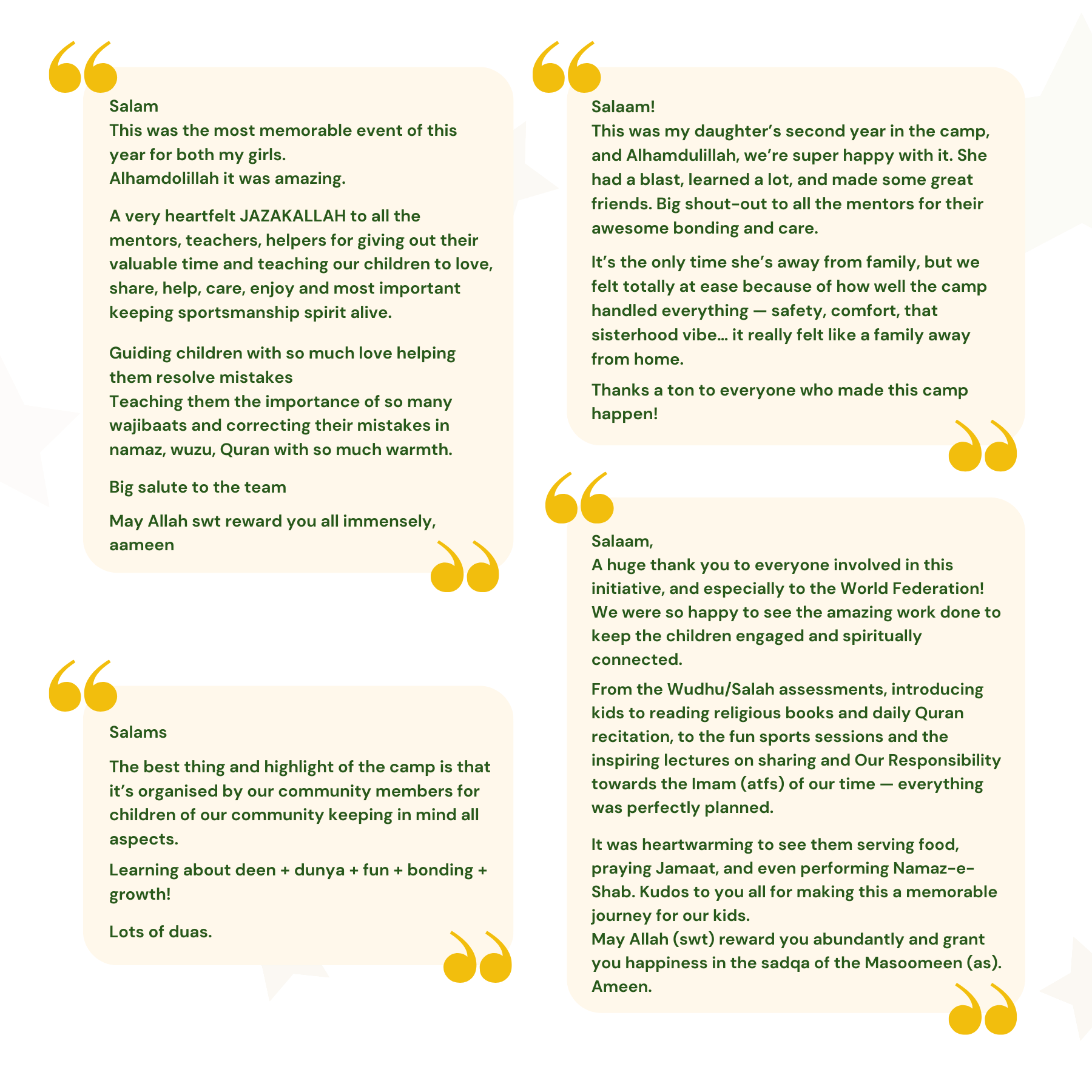 We remain committed to enhancing this impactful programme, nurturing the growth of our youth, and fostering a strong and united community. We thank all those who contributed to its success and look forward to future camps that continue to inspire and uplift our young participants, InshaAllah.