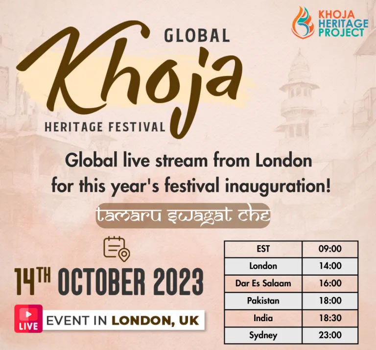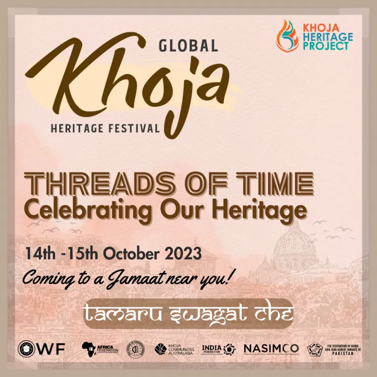 You are cordially invited to attend the annual festival – The Khoja Heritage Day – at your local Jamaat on Saturday, 14th October 2023 or Sunday, 15th October 2023. Look out for details from your Jamaat on their selected date.