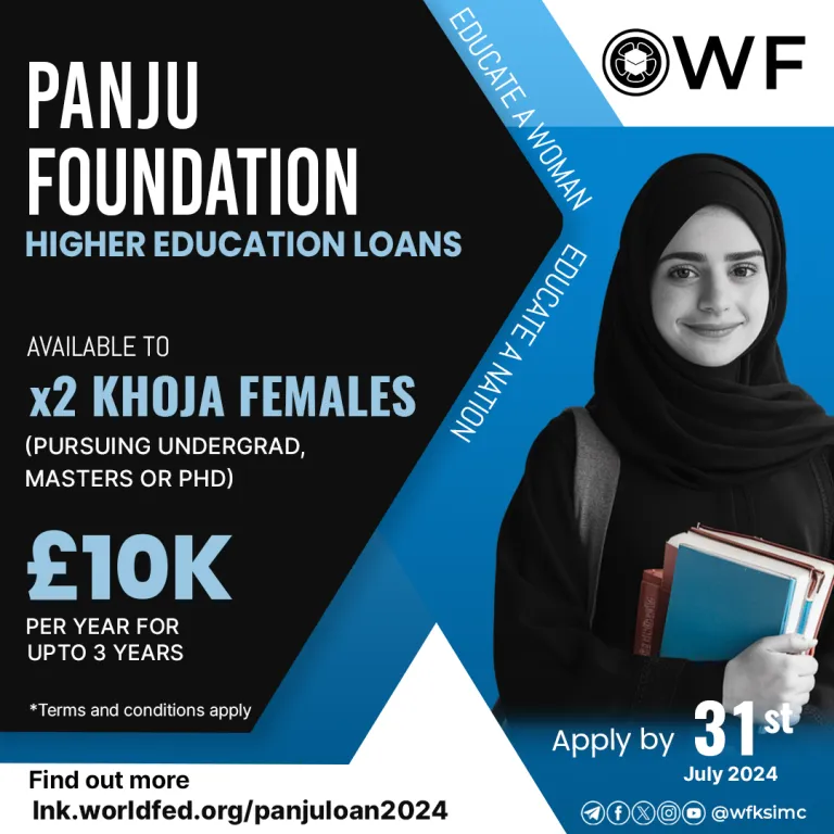 We are excited to announce The Panju Foundation Student Loan will be available for two Khoja female students who have demonstrated academic excellence and wish to pursue higher education studies, for the Academic Year 2024/25.