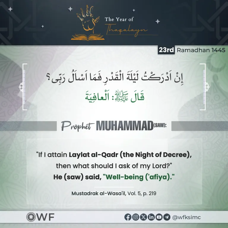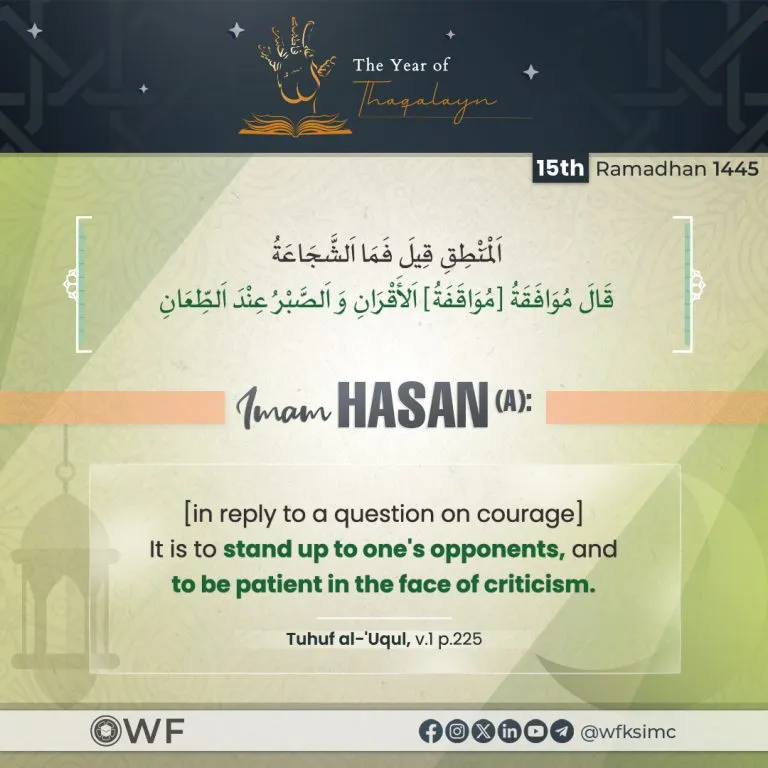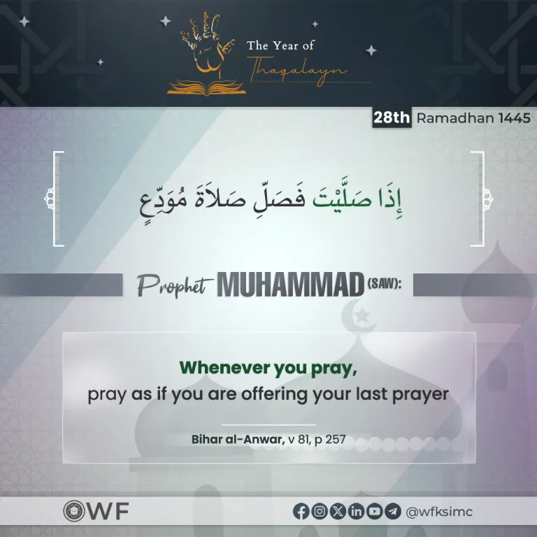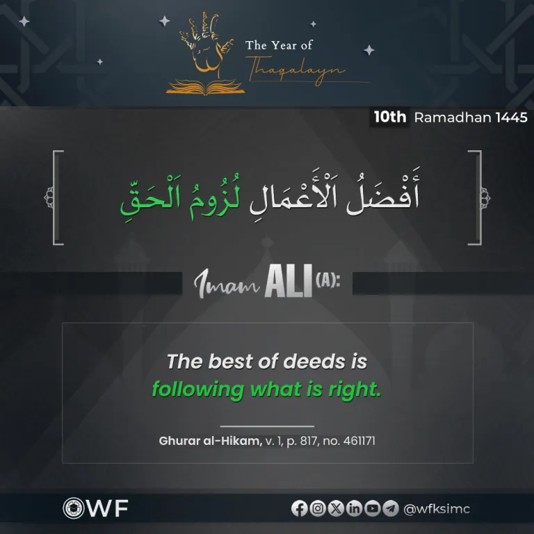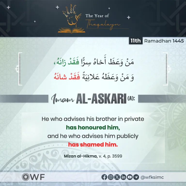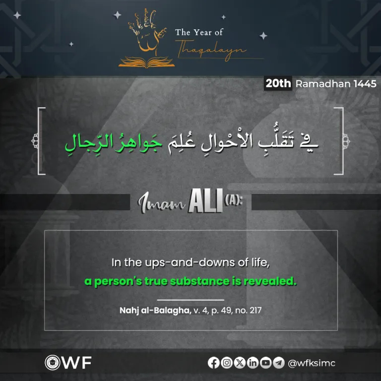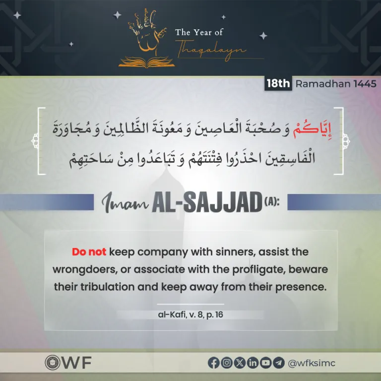 Join us each day as we embark on this spiritual journey through the Quran and Hadith of the Ahl al-Bayt (a). May these daily treaures inspire and uplift us, guiding us towards greater piety, compassion, and righteousness. Let us make the most of this sacred month and embrace the spirit of the Year of Thaqalayn.