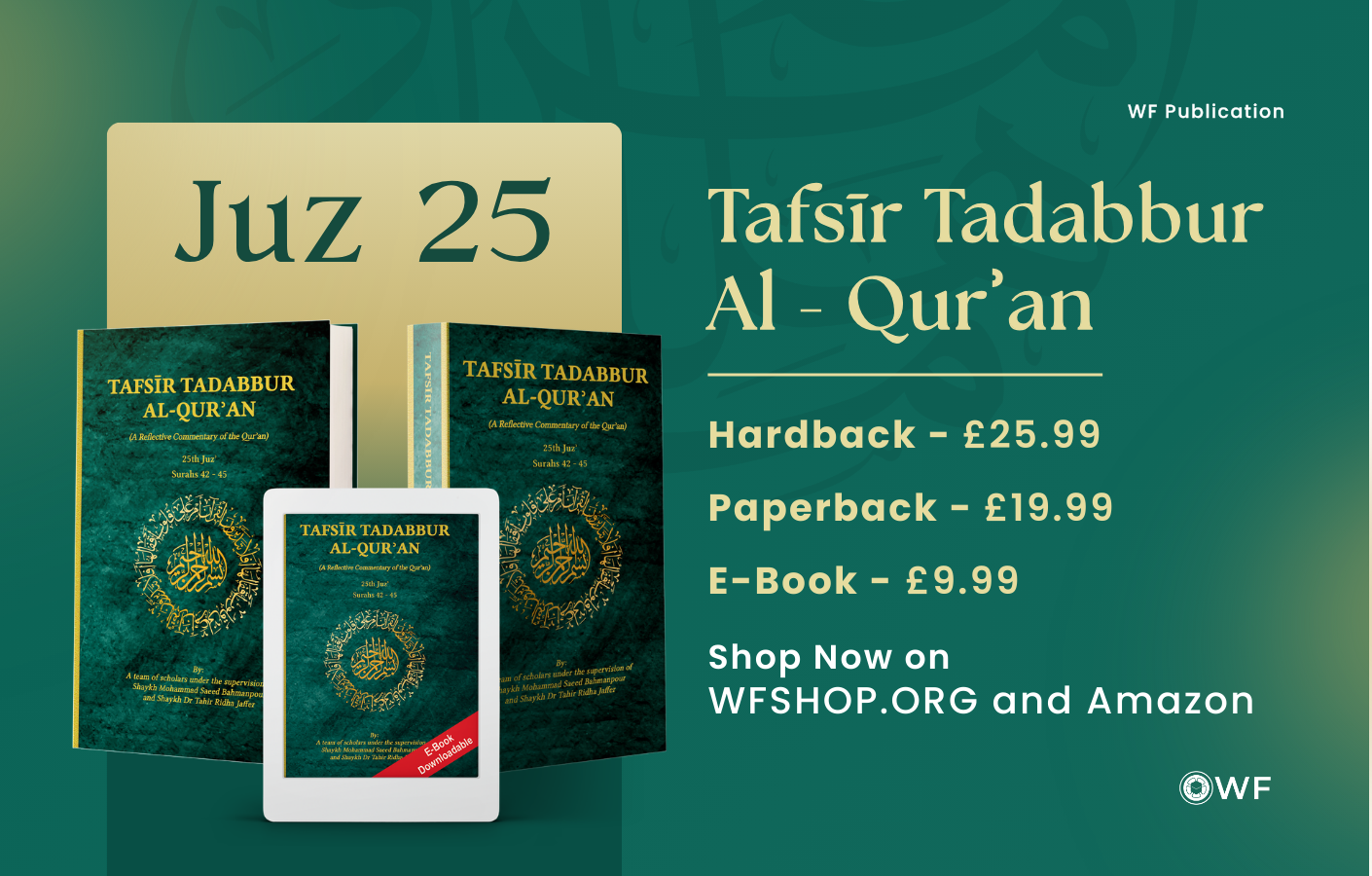 With this spirit, the Islamic Education Department of The World Federation of KSIMC is pleased to announce the release of Tafsīr Tadabbur al-Qur’an – Juzʾ 25, the sixth volume in this ongoing reflective Qur’anic commentary series, now available in book and e-book formats.