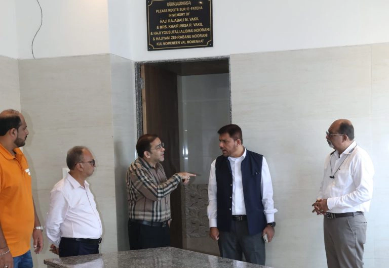 Alhaj Safder Jaffer then visited Mumbra Kabrastan for an inauguration of its newly extended facility, including a Ghusl Khana. The event drew attendance from dignitaries, including Member of Parliament MLA Jitendra Ahwaad, who has been instrumental in supporting these initiatives.
