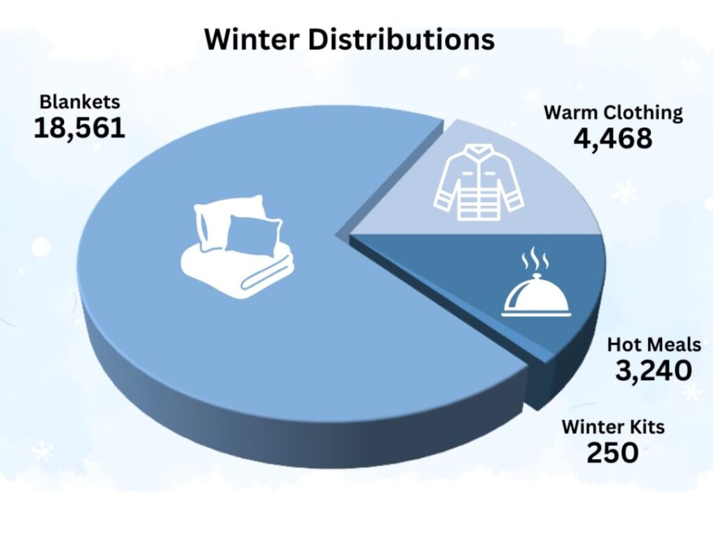 Across all regions, over 29,000 beneficiaries received vital winter support. Your compassion translated into warmth and safer living conditions for families who otherwise would have faced the bitter cold alone.